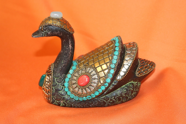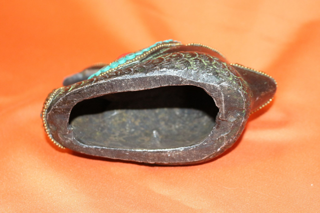 Ich verkaufe hier eine schöne Ente aus Metall, möglicherweise Gusseisen aber ich denke mindestens Bronze (das Ding ist nicht magnetisch) schön Dekoriert mit schönen Steinen (vielleicht hat ja wer mehr Info für mich) 7cm breit, 12cm hoch und ca. 16cm lang bei einem Gewicht von 528 Gramm