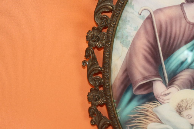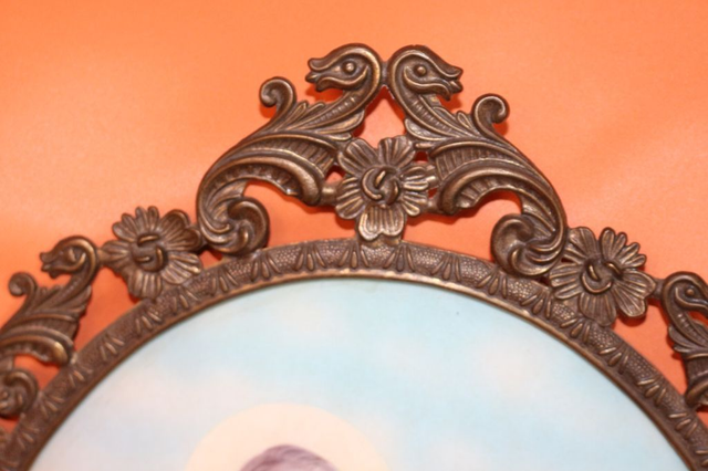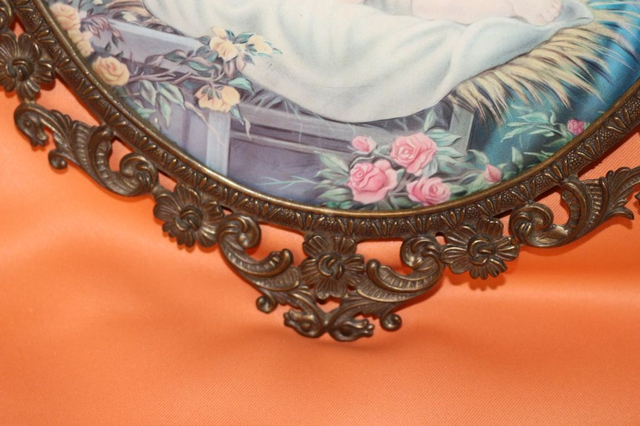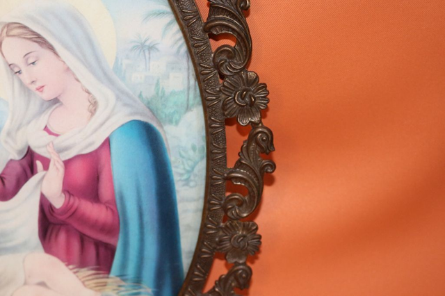 Ich verkaufe hier ein schönes Heiligenbild (Druck) mit einem Messing oder wohl eher Bronze Rahmen und Holzrückwand in recht gutem Zustand.