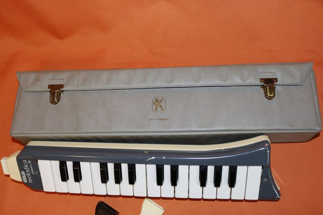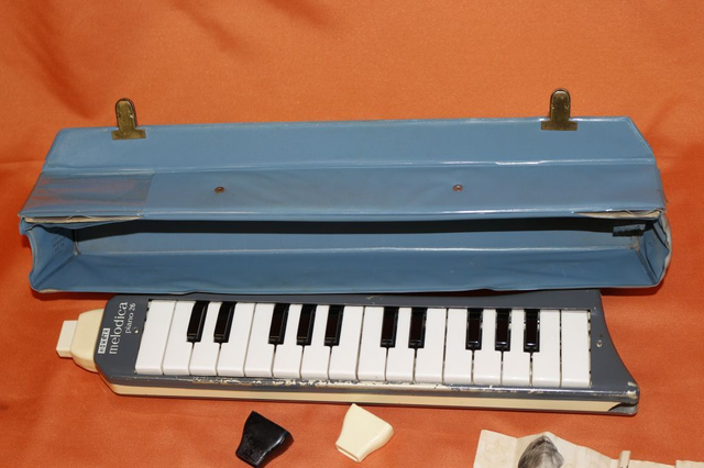 Ich verkaufe hier eine alte Hohner Melodica piano 26. In stark bespieltem Zustand, das spielen geht schwer (eventuell klebt ein Ventil). Außer man drückt den Entlüftungsknopf, dann gehts recht leicht aber ist kompliziert. Auf der unteren Seite ist eine Ecke gebrochen. Deswegen verkaufe ich es sicherheitshalber als defekt!