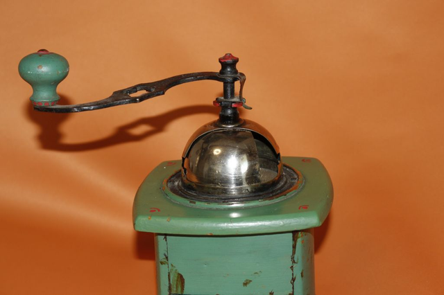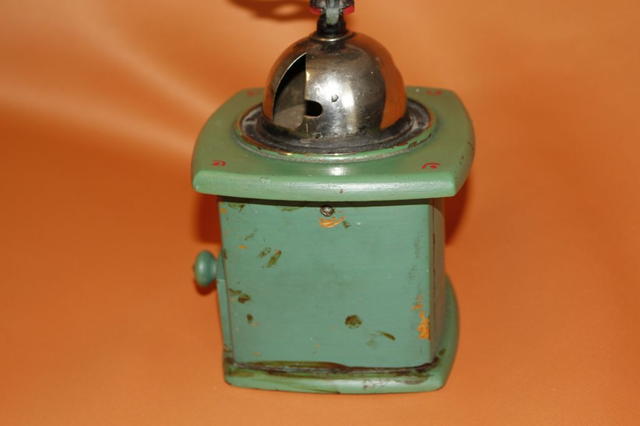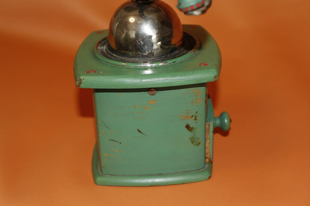 Ich verkaufe hier eine schöne, vermutlich handbemalte Kaffeemühle! Der Knopf für den Schieber vom Bohnenbehälter fehlt.