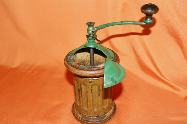Ich verkaufe hier eine alte Kaffeemühle in Turmform, sie ist komplett und sie funktioniert!