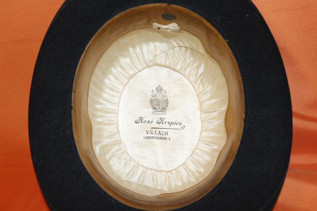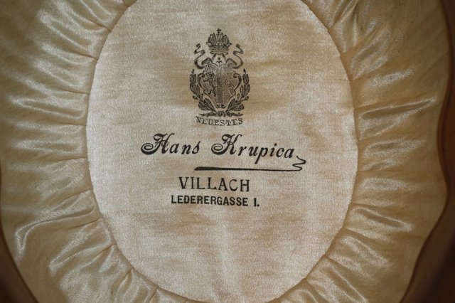 Ich verkaufe hier eine alte vermutlich antike Melone/Bowler der Firma Hans Krupica in Villach. Im Großen und Ganzen ist sie sehr gut in Schuss, lediglich der Steg an der Vorderseite ist leicht abgewetzt. Vermutlich Größe 56 oder 57