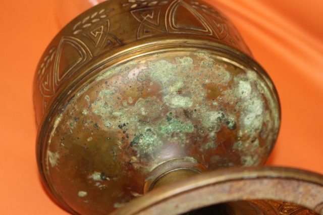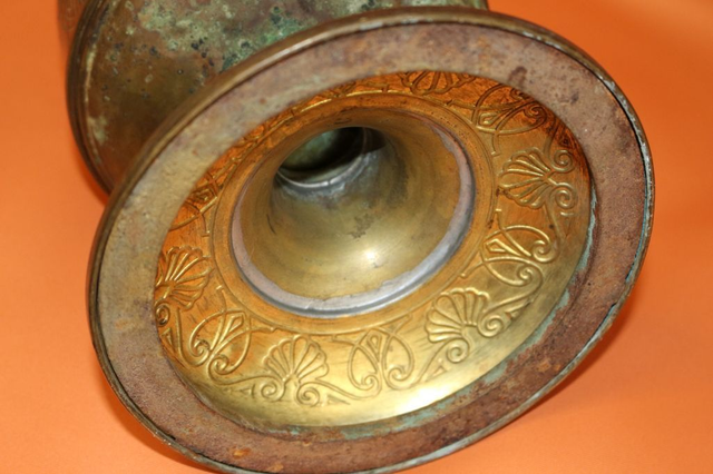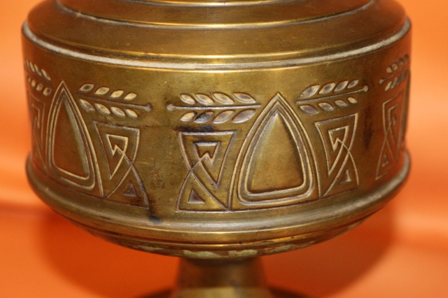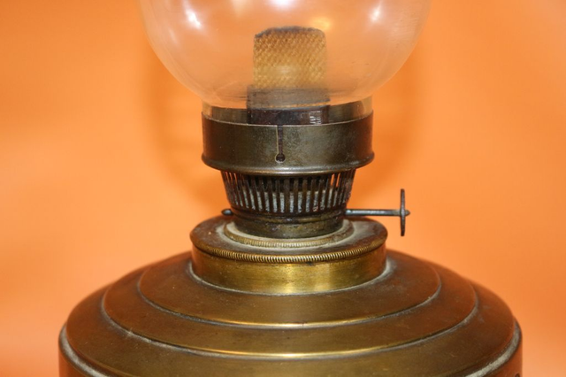 Ich verkaufe hier eine alte Petroleumlampe, vermutlich aus Messing. Mit schönen Verzierungen. Alle Teile die gängig sein sollen sind gängig, auf Dichtheit nicht geprüft, auf der Tankunterseite starke Gerbauchsspuren, ansonsten in recht gutem Zustand.