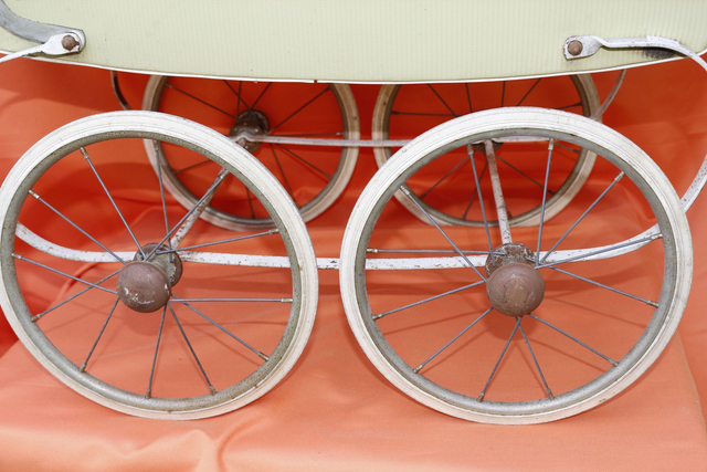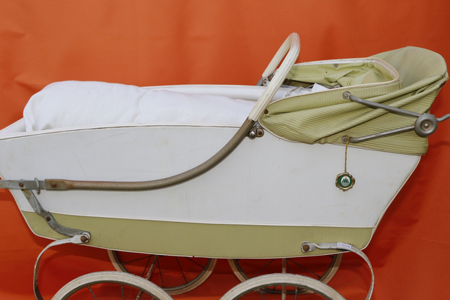 Ich verkaufe hier einen sehr alten (lt. Vorbesitzer aus den Mitte 1940ern, ich schätze allerdings eher auf Mitte bis Ende der 1950er) Puppenwagen vermutlich der Marke "Seewald".