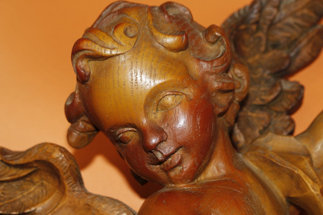 Ich verkaufe hier einen sehr schönen und großen, geschnitzten Putto, Engel aus Holz.